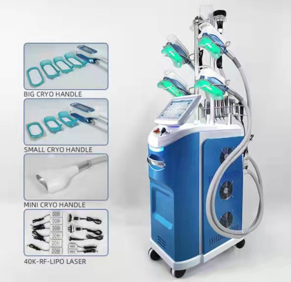 cryolipolysis 360-degree full range of cooling and heating, freezing at minus 10℃ to positive 45℃ heating, 4 groups cycle modes for operation, parameters can be set flexibly; 8 pcs different sizes cryo handles are suitable for different size areas and body shape.